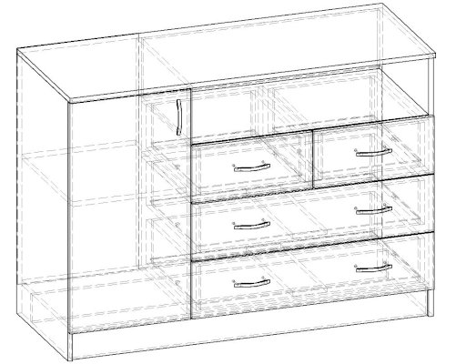 • Корпус, полки и фасады изготовлены из ЛДСП 16 мм с кромкой ПВХ 0,4 мм.