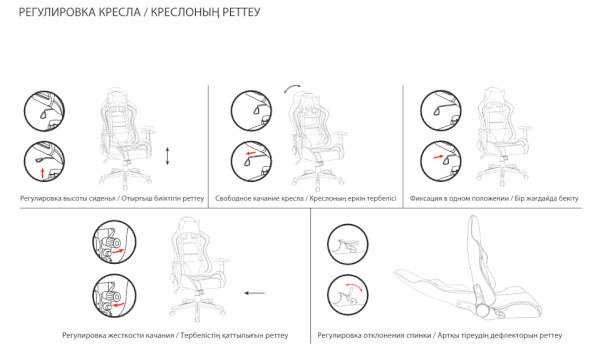 Модель оснащена механизмом качания «топ-ган» с регулировкой под вес пользователя и возможностью фиксации в рабочем положении.