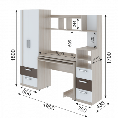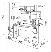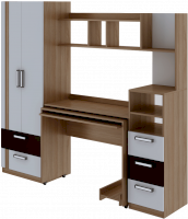• Шкаф снабжен торцевым вешалом для одежды на плечиках и полку над ним + 2 выдвижных ящика.