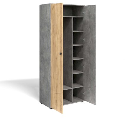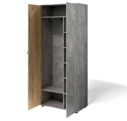 Современный шкаф в прихожую с  двумя дверцами идеально решит вопрос хранения одежды в небольшом помещении. Благодаря небольшой глубине, антресольной полке и выдвижной штанге этот элемент мебели для прихожей не займет много места, но разместит вещи компактно и удобно.