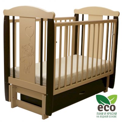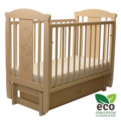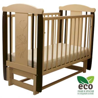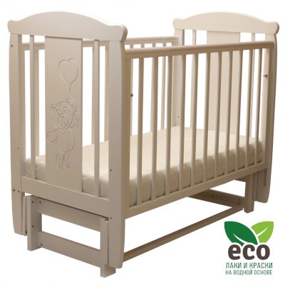 Кроватка "Соня 05" имеет механизм качания продольный маятник. Механизм качания фиксируется. Возможен вариант кровати с ящиком.