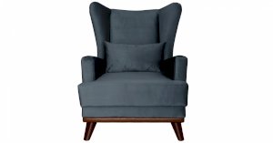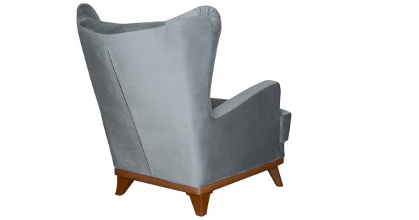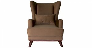 Высокая спинка с наклоном и мягкие подлокотники обеспечивают удобную посадку, дополнительный комфорт создает декоративная подушка. Царга кресла обтянута искусственной кожей в цвет опорам.