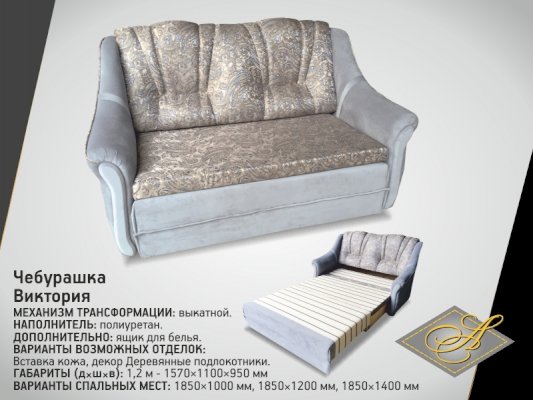 Диван Чебурашка Виктория 1,2 (Асм) - за 29 737 руб. в Калининграде. Купите на сайте kaliningrad.onlinemarketmebeli.ru или по телефону 8(800)505-30-63 уже сегодня! Уточнить наличие, комплектацию, актуальную цену можно бесплатно у менеджера ежедневно. Закажите Диван Чебурашка Виктория 1,2 (Асм) до конца акции! Доступна покупка в кредит, рассрочку. Доставим со склада или на заказ.