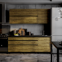 Геометричные формы этой модели сопровождает минимальное число деталей. Стиль "минимализм" воплощает в себе самые современные тенденции в дизайне кухонь. В жертву им принесены ручки фасадов - ничто не должно нарушать эту строгую идиллию.