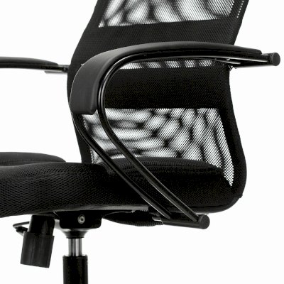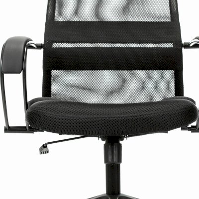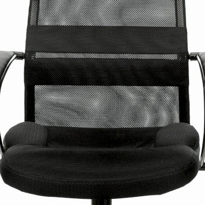Обивка спинки из сверхпрочной износоустойчивой сетчатой ткани. Данная конструкция имеет ряд преимуществ: воздухопроницаемость - летом в кресле не жарко, а зимой не холодно, в отличии от того же кожзама; аккуратный, не громоздкий внешний вид; эргономичная посадка с выраженной поясничной поддержкой. Сиденье кресла просторное с плотной набивкой поролона средней жесткости. Износостойкая объемная мебельная ткань TW практически не выцветает.