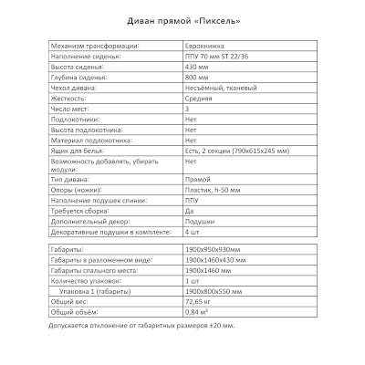 Диван Пиксель (Аквилон) - за 30 305 руб. в Калининграде. Купите на сайте kaliningrad.onlinemarketmebeli.ru или по телефону 8(800)505-30-63 уже сегодня! Уточнить наличие, комплектацию, актуальную цену можно бесплатно у менеджера ежедневно. Закажите Диван Пиксель (Аквилон) до конца акции! Доступна покупка в кредит, рассрочку. Доставим со склада или на заказ.