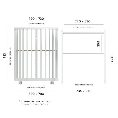 • люльки: габаритный размер 78х78 см, размер спального ложа 73х73 см