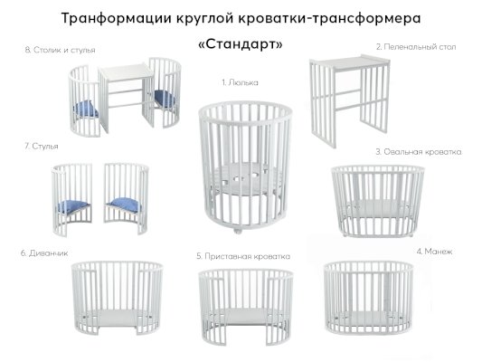Кроватка имеет 8 трансформаций: