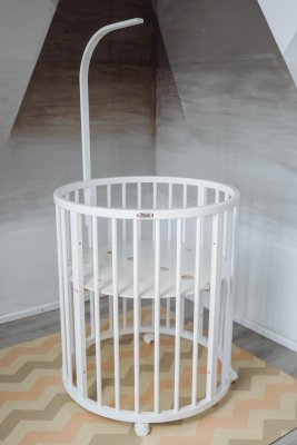 1. Уютная колыбелька. Самое первое использование кроватки полностью соответствует ее прямому назначению – спальное место для ребенка. Размеры люльки 78*78 см. Форма люльки - круг. Для колыбельки вы можете приобрести дополнительно круглый матрас 73х73 см.