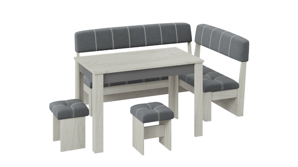 Сборка скамьи в этом наборе возможна как на левую, так и на правую сторону. Поэтому уголок «Альфа» станет хорошим вариантом для приобретения, ведь расположить его с легкостью можно будет в любой планировке.