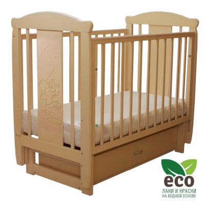 Кроватка "Соня 04" имеет механизм качания поперечный маятник. Механизм качания фиксируется. Возможен вариант с ящиком.