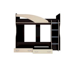 • Кровать-2-х ярусная имеет в своем составе имеет два спальных места сверху и снизу, лестницу, и два выдвижных ящика снизу