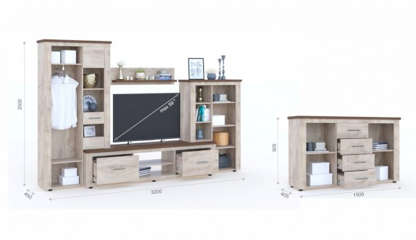 • ТВ-тумба рассчитана на диагональ телевизора до 59 дюймов