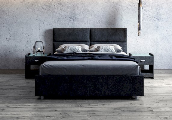 Лаконичная модель с изголовьем из объемных прямоугольников, сшитых между собой. Царги кровати выполняются по технологии съемного чехла. Модель изготовлена из ДСП. Обратная сторона изголовья обита спандбондом, но, при желании, её можно выполнить из основного обивочного материала. В комплект кровати входит кроватное основание. Каркас основания выполнен из металла, ламели - из берёзы. При необходимости в комплект кровати можно включить подъемный механизм с бельевым ящиком, который существенно увеличит объем хранения вещей, а так же позволит легко производить уборку пыли под кроватью.