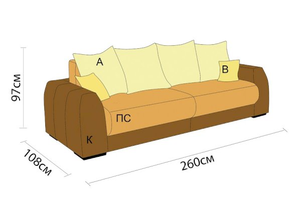 Диван Монако смотрится очень привлекательно за счет большого количества подушек и широких боковин.