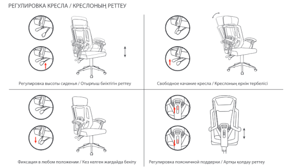 Тип механизма кресла: Система отклонения спинки с фиксацией в любом положении