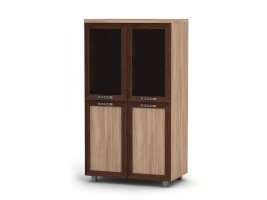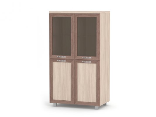 Данное изображение представлено в следующих цветах: корпус - Ясень Шимо светлый, фасады: рамка МДФ - Ясень Шимо тёмный + филёнка - Ясень Шимо светлый / стекло БРОНЗА.