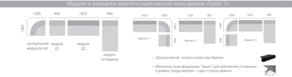 Механизм трансформации "Зацеп" для крепления оттоманки к дивану предусмотрен с двух сторон дивана