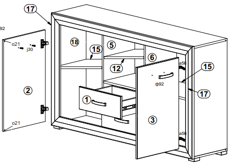 Двери шкафа могут устанавливаться как с правой, так и с левой стороны.