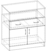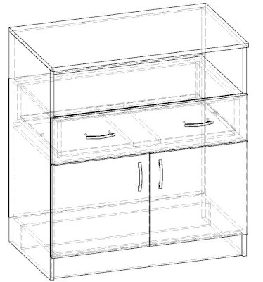 • Корпус, полки и фасады изготовлены из ЛДСП 16 мм с кромкой ПВХ 0,4 мм.