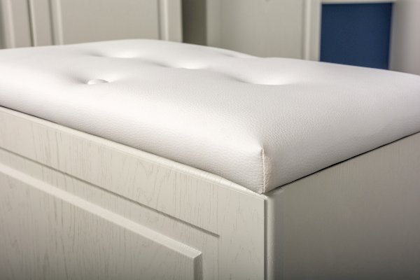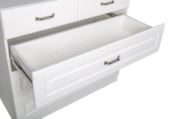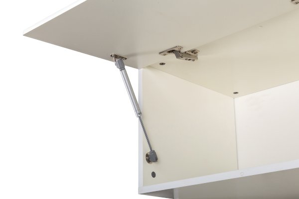 Фурнитура: Распашные фасады на четырёхшарнирных петлях, подъёмные фасады на газлифтах, выдвижные ящики на шариковых направляющих полного выдвижения.