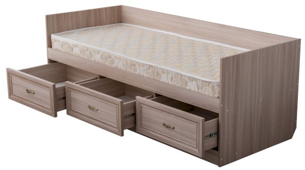 Односпальная кровать с выдвижными ящиками глубиной 400 мм на шариковых направляющих полного выдвижения. Идеальный вариант для детской комнаты.