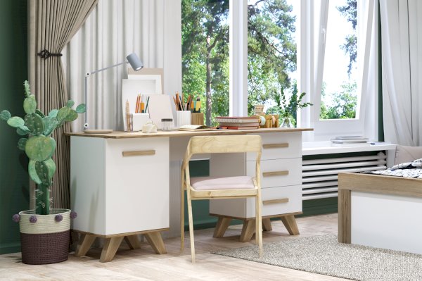 Современный ритм жизни часто диктует необходимость оборудование рабочего места в квартире или доме. Письменный стол серии «Вега Скандинавия» позволит создать уютный уголок для работы в квартире или студии, может быть использован как туалетный столик в спальне, или в сочетании с другими модулями, позволит оборудовать полноценную молодёжную комнату.