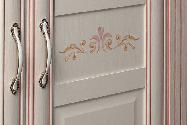 Фасады: МДФ рамочные, декор – «кремовый белый» с эффектом патины, матированное стекло, рисунки