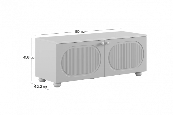 Тумба оснащена двумя распашными дверцами, за которыми располагается вместительное внутреннее пространство для хранения книг, игрушек, текстиля и других необходимых вещей. Такое решение позволяет скрыть содержимое и сохранить аккуратный внешний вид комнаты.